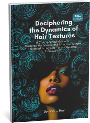 Purchase the "Deciphering The Dynamics of Texture Hair" paperback, a Comprehensive Guide to Mastering the Science and Art of Hair Texture, presented through the Texture Dynamics Framework™. Readers are given a clear and measurable way to approach textured hair across different environments, from the classroom to the salon to everyday care. It bridges the entire textured hair ecosystem, enhancing technical precision for professionals, equipping educators with a clear and teachable language, enabling brands to stand out with precise, meaningful product communication and empowering consumers through understanding and confidence.